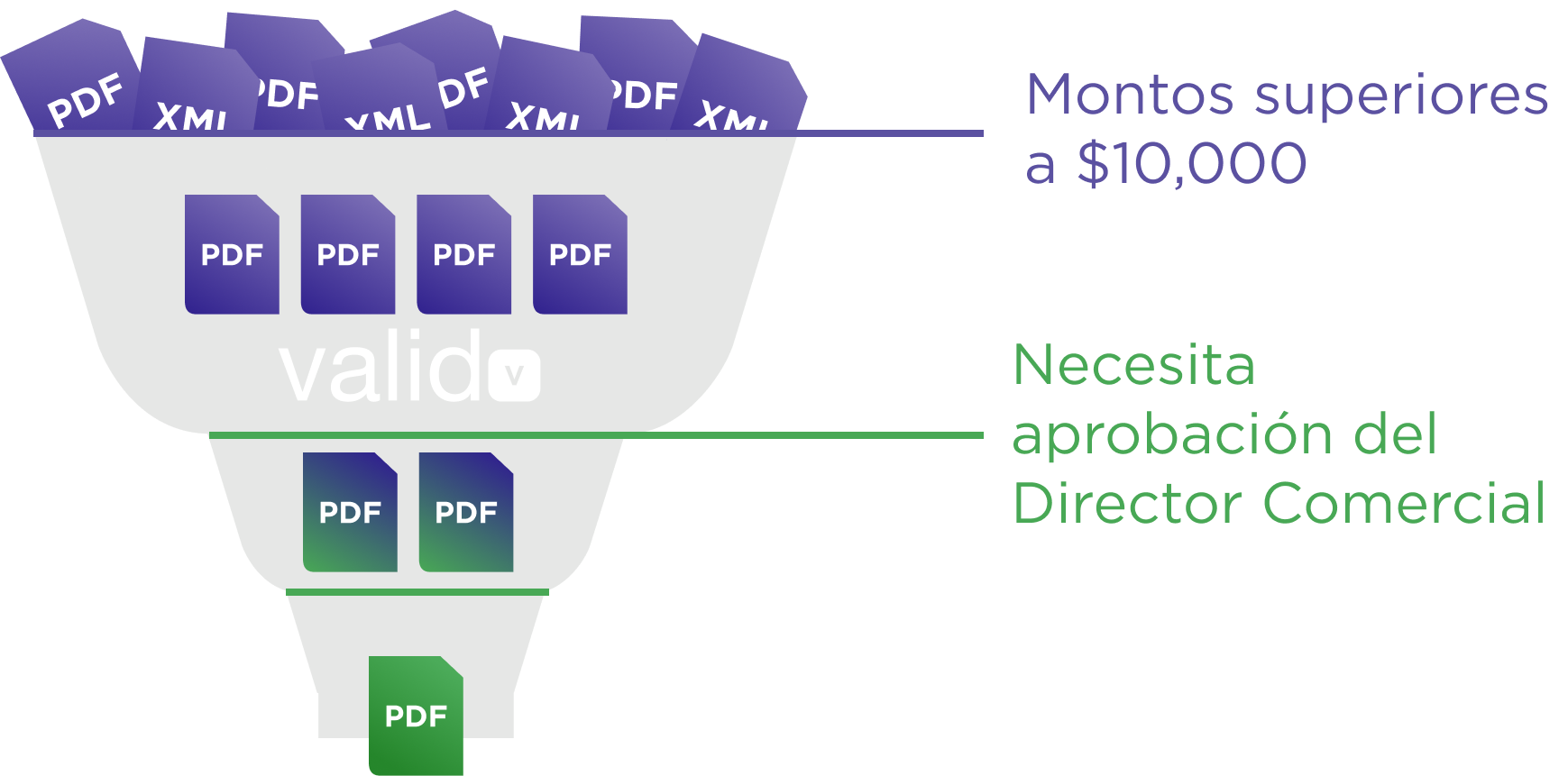 No solo ahorras en el costo de los recursos que le dedican tiempo mensualmente a la recepción y procesamiento de facturas en el ERP, sino también puedes crear flujos de aprobación por niveles y montos.