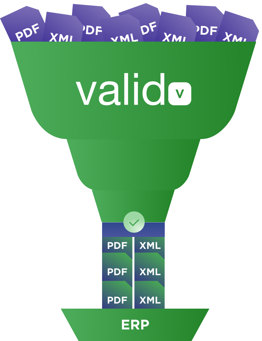 Capacidad de recibir facturas de proveedores, asociarlas a las órdenes de compra y si es correcta la asociación, enviarlas al ERP para su proceso de registro y pago de la misma, siendo la ventanilla del proveedor el portal de Valid®.